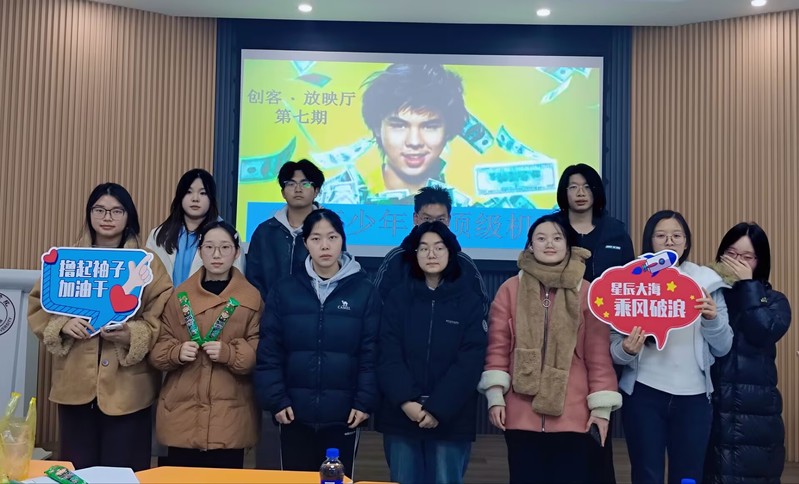 12月13日晚,一站式学生社区活动室内温情洋溢, 第七期创客 · 放映厅主题观影活动在此举行。本次活动放映影片《亿万少年的顶级机密》,带领同学们走进一段从游戏少年到海苔帝国创始人的真实创业历程。